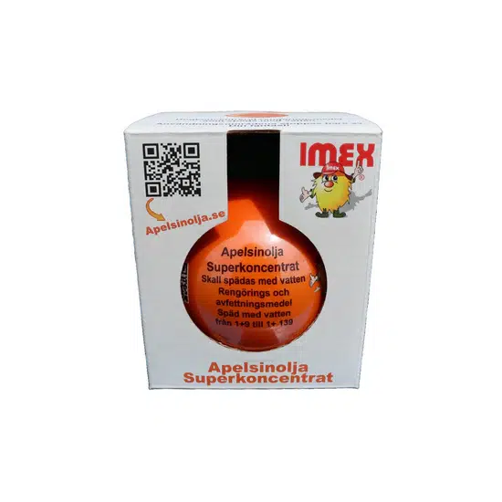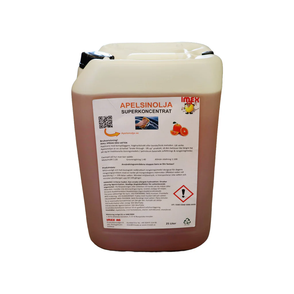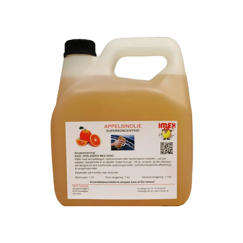 Appelsinolie er et naturligt, superkoncentreret rengøringsmiddel. Det er biologisk nedbrydeligt og udviklet til at løse nutidens rengøringsopgaver – med omtanke for fremtidens mennesker. Produktet skal altid fortyndes med vand.